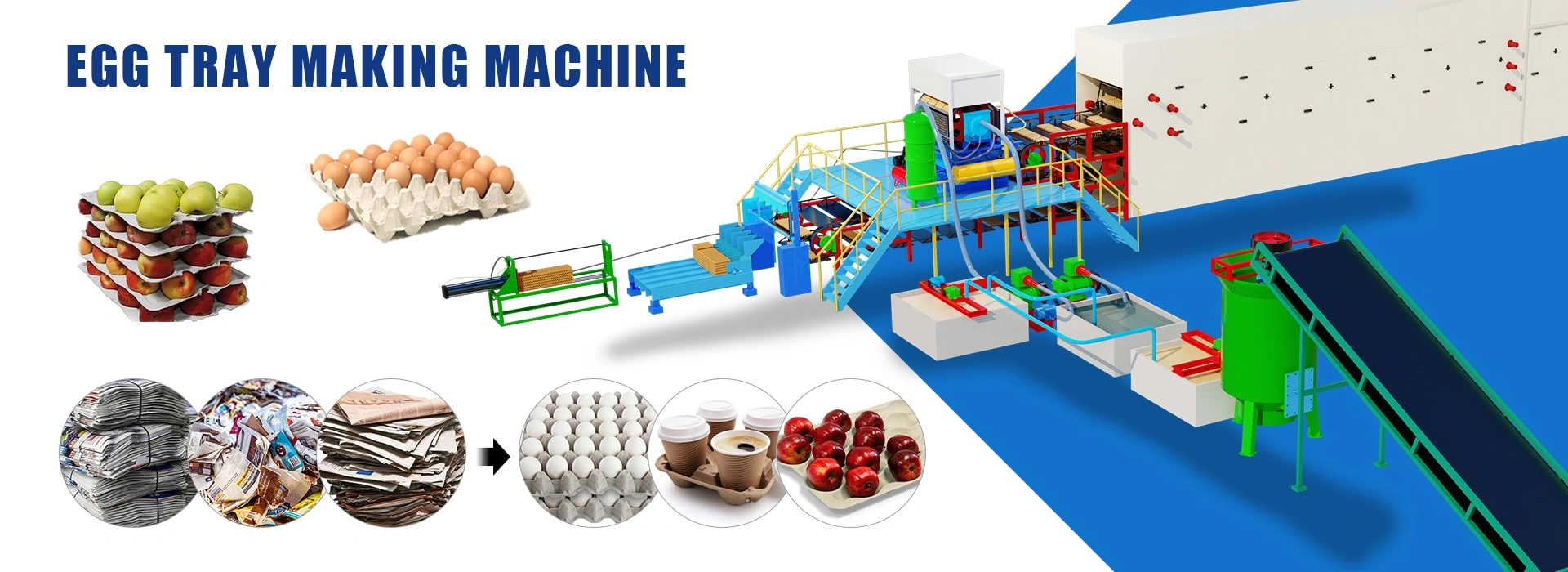 Mesin pembuat egg tray merupakan salah satu jenis peralatan fullu automatic yang memproduksi egg tray yang terbuat dari kertas bekas, kardus, atau bahan limbah pertanian. Mesin tersebut menggunakan proses pencetakan untuk membuat baki telur yang dapat digunakan untuk menyimpan dan mengangkut telur.