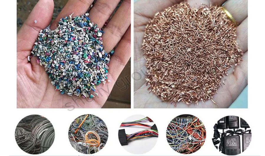 The final products include clean copper granules (copper rice) and plastic particles, both of which can be reused or sold.
